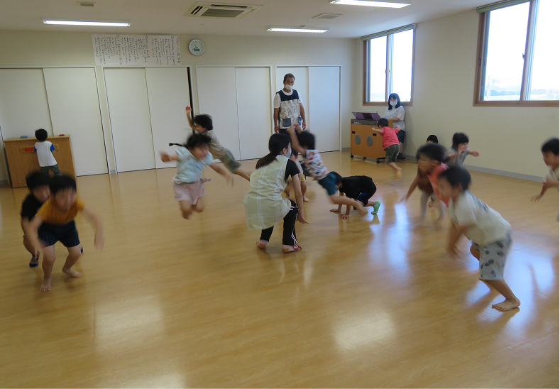 毎週火曜、内村体操教室で基礎的な運動力を養い、楽しみながら身体を守る力を育みます。