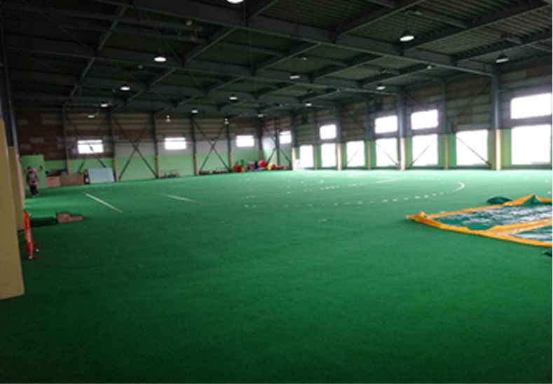 屋根付きの広い運動場で雨天でも元気に体を動かし、運動会も屋内で開催しています。